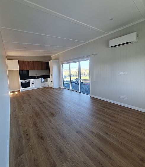Ready to decorate with furniture and decor, this transportable home is a finished blank canvas for the client.