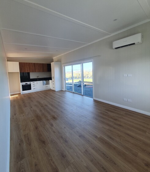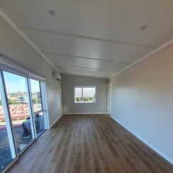 Ready to decorate with furniture and decor, this transportable home is a finished blank canvas for the client.